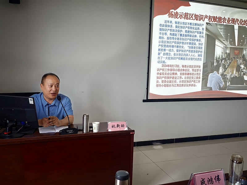 姚新动结合杨凌示范区发展实际,围绕《陕西省知识产权保护和促进条例》(以下简称《条例》)的制定背景、重大意义及核心内容展开深入解读。他系统梳理了《条例》6章62条的核心条款,并从四方面提出落实建议:一是聚焦领导干部“关键少数”的责任担当;二是紧扣西部示范知识产权强省建设目标;三是要以钉钉子精神和抓铁有痕、踏石留印的决心抓落实;四是强化知识产权对农业新质生产力的培育支撑。授课内容理论扎实、案例丰富,既有政策高度,又贴近实践需求,为示范区知识产权工作的推进提供了明确方向。与会干部表示,此次培训对实际工作具有重要指导意义,未来将结合部门职责细化落实举措。